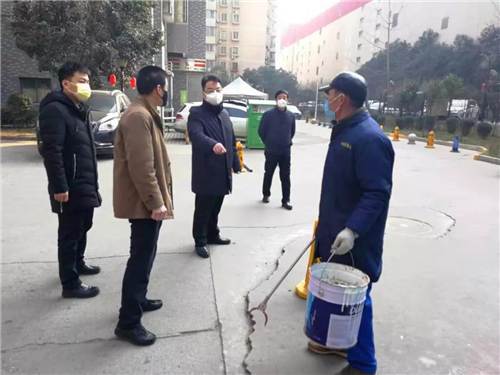 在蘭蒂斯城項目,周鋒一行來到社區(qū)出入口,主動接受了社區(qū)保安體溫測量,翻閱查看了進入社區(qū)人員登記記錄;在社區(qū)服務中心,他詳細詢問了社區(qū)疫情防控物資準備及使用情況;隨后現(xiàn)場檢查了社區(qū)垃圾集中收集、消殺、拉運以及公共區(qū)域的消毒工作。