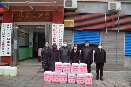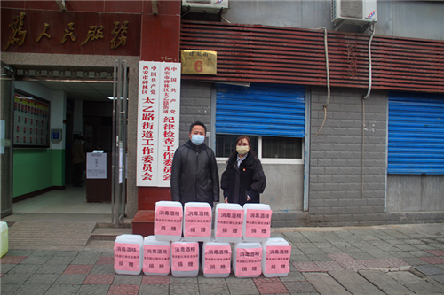 2月6日下午,陜西新紅鋒投資集團常務(wù)副總裁、中共西安市碑林區(qū)第十三屆黨代表張紅梅向碑林區(qū)太乙路街道辦捐贈消毒酒精500升,用于新型冠狀病毒感染的肺炎疫情防控工作。太乙路街道黨工委副書記張彤、黨辦主任王艷代表街道辦接收了捐贈物資;陜西新紅鋒投資集團黨委副書記、副總裁葉清海出席捐贈儀式。