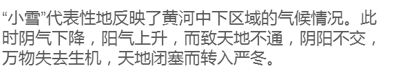 由于天氣寒冷,降水形式由雨變?yōu)檠?,但還不到大雪紛飛的時節(jié),所以叫小雪。