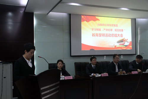 11月29日下午,陜西新紅鋒投資集團(tuán)在總部辦公樓召開了“學(xué)習(xí)制度、嚴(yán)肅紀(jì)律、規(guī)范管理”教育整頓活動總結(jié)大會,會議由集團(tuán)黨委書記葉青海同志主持。