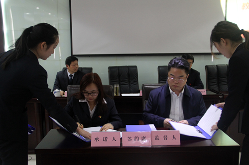 會前,集團(tuán)董事長周鋒同志、集團(tuán)總經(jīng)理李文武同志、集團(tuán)常務(wù)副總裁張紅梅同志分別與各高管簽訂了《員工從業(yè)廉潔自律承諾書》、《禁酒令承諾書》。