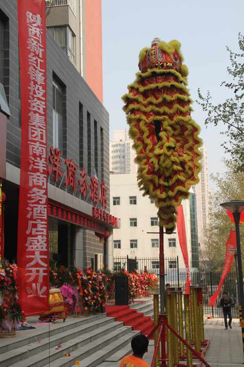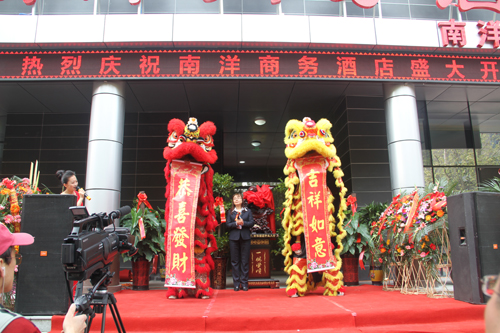 上午10點(diǎn)半鐘,主持人宣布酒店開業(yè)的話音未落,在一陣禮炮聲中,南洋商務(wù)酒店開業(yè)慶典儀式徐徐拉開了帷幕。首先,集團(tuán)黨委書記葉清海同志發(fā)表了熱情洋溢的講話,緊接著進(jìn)入了畫龍點(diǎn)睛環(huán)節(jié),由陜西新紅鋒投資集團(tuán)常務(wù)副總裁張紅梅女士、南洋商務(wù)酒店董事劉曉飛女士共同為雄獅點(diǎn)睛并封上紅包。片刻間,一對(duì)雄獅睜開雙眼,高高躍起,現(xiàn)場(chǎng)掌聲雷動(dòng),慶典活動(dòng)氣氛被推至高潮,也預(yù)示著酒店開業(yè)的吉兆。緊接著,最激動(dòng)人心的剪彩儀式隨之到來,陜西新紅鋒投資集團(tuán)總裁周鋒、常務(wù)副總裁張紅梅,南洋商務(wù)酒店董事韓勝彬、劉曉飛、集團(tuán)黨委書記葉清海、副總裁李文武、南洋商務(wù)酒店執(zhí)行總經(jīng)理高奇等領(lǐng)導(dǎo)共同擔(dān)任了剪彩嘉賓。剪彩儀式結(jié)束后,現(xiàn)場(chǎng)進(jìn)行了舞獅表演。上午11點(diǎn)半,整個(gè)開業(yè)慶典儀式落下了帷幕。