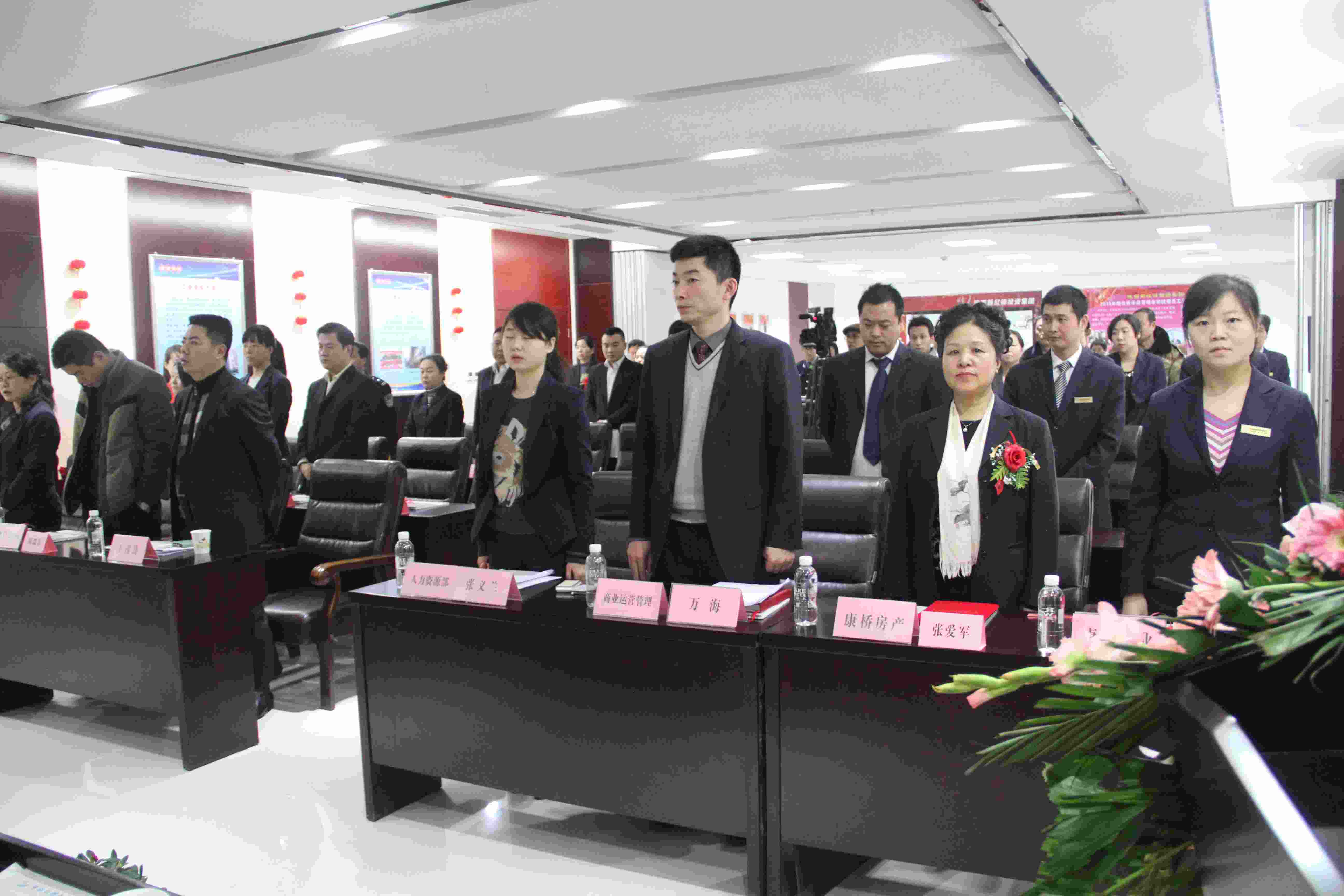參會(huì)全體人員在國(guó)歌聲中莊嚴(yán)肅穆